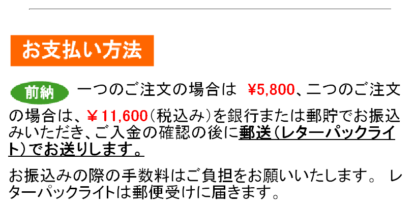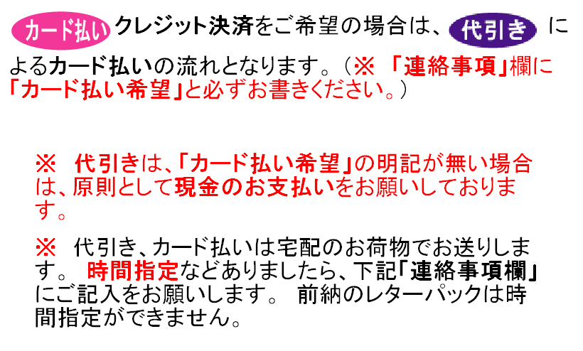 (代引きでお送りします。宅配業者にカードでお支払い。)