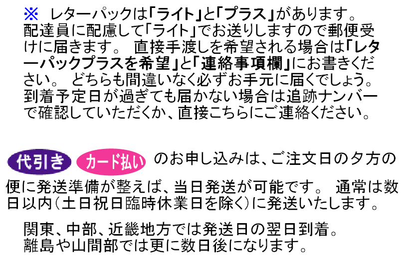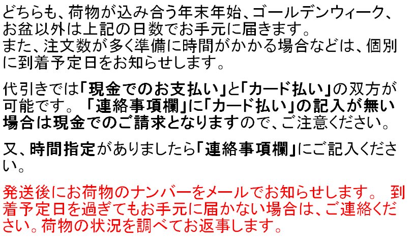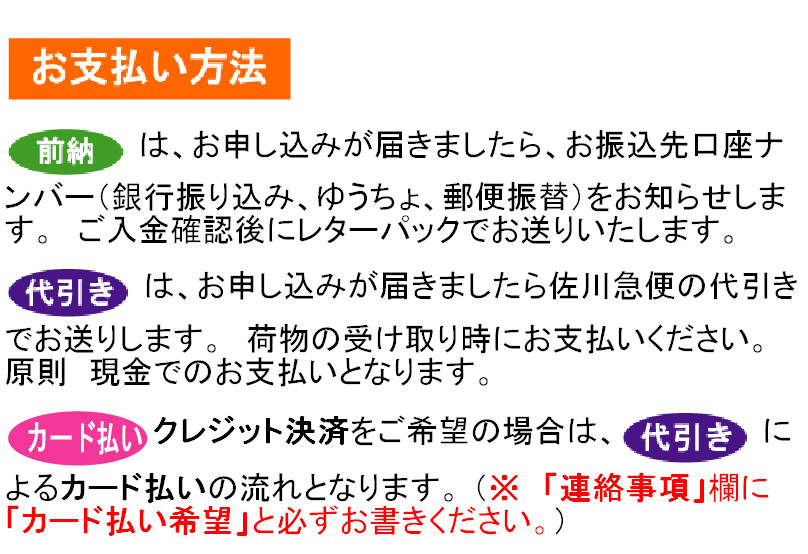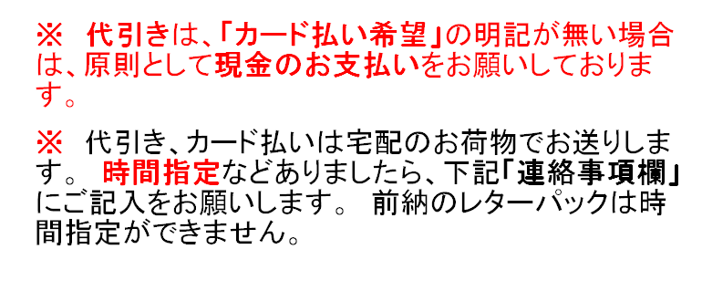 (代引きでお送りします。宅配業者にカードでお支払い。)