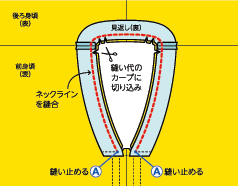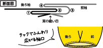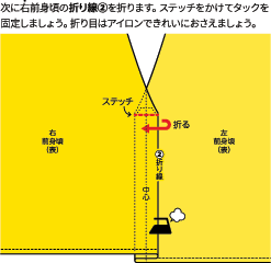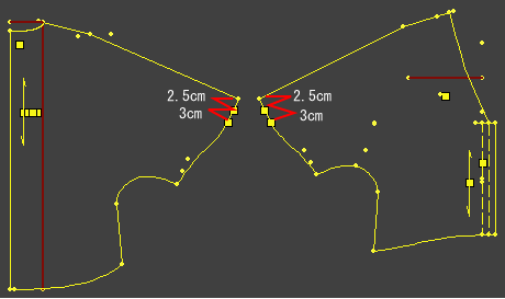![]() 実行ボタンを押すと下の製図が画面に現れます。 ![]() 袖部分を作成しますが、、、少し複雑です。 前中心は、片倒しのワンタックです。 前中心から3cm出しますが、ネックラインは、その中点に向かって緩やかなカーブを描きます。 ![]() 余分な線を消して仕上げると下図の様になります。 ![]() ドルマンスリーブは、縫う点では簡単ですが、今回のデザインは、前中心のタックがポイントです。 前身頃同士を縫合し、アイロンで割りましょう。 ネックラインには3cm幅の見返しを準備し、ネックラインを下図の様に縫合します。(下図左) ![]() 下図の様にたたんで、最後にステッチで押さえて完成です。 ![]() 袖口のタックを解説します。 ![]() ![]() タックを上図の様にたたんだ後、袖口を折り上げてミシンで押さえて完成です。 |