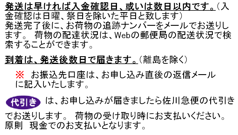 (代引きでお送りします。宅配業者にカードでお支払い。)