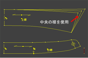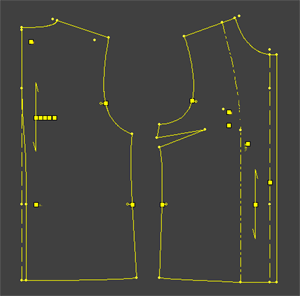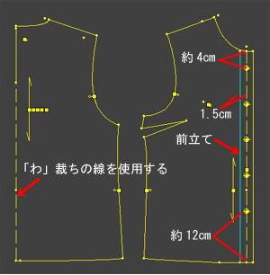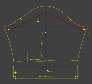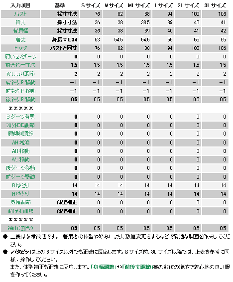 身頃を測った前後ネック寸法を襟ソフトに入力します。 3種の襟が描かれますので中央の襟を使用します。 ![]() |