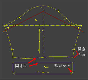ヒップまで届かないショート丈です。 ![]() 実行ボタンを押すと左下の製図が画面に現れます。 → ![]()