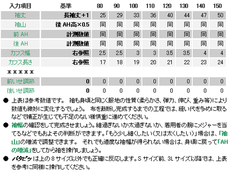 前後身頃のアームホールを測り、袖ソフトに入力すると 身頃にぴったりの袖ができ上がります。