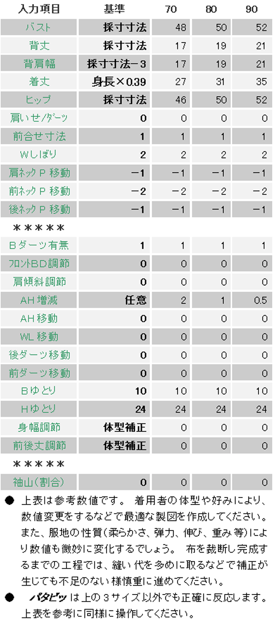 ベビーの採寸は難しいので、標準体型であれば、下表のまま操作しましょう。